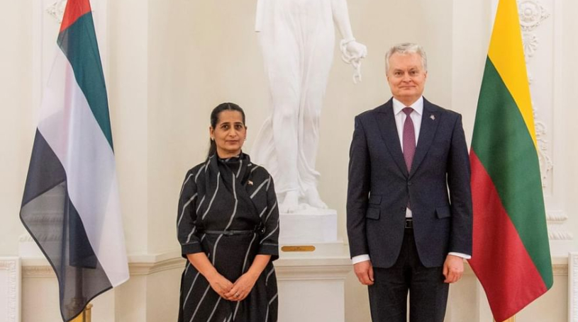 The ambassador conveyed the greetings of President His Highness Sheikh Mohamed bin Zayed Al Nahyan, His Highness Sheikh Mohammed bin Rashid Al Maktoum, Vice President, Prime Minister and Ruler of Dubai, and His Highness Sheikh Mansour bin Zayed Al Nahyan, Vice President, Deputy Prime Minister and Chairman of the Presidential Court, to President Nausėda, along with their wishes for further development and prosperity to the government and people of Lithuania.